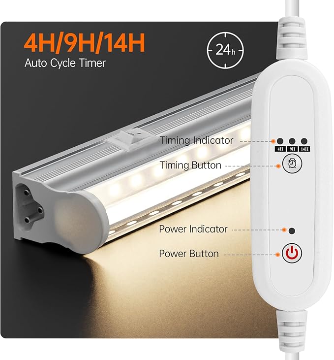 - Dual Power Cords for Plant Growth Lights - Simplify your plant care with our dual power cord system! It includes a standard switch cord for your own smart controller (not included) and a timer cord that allows you to schedule grow lights to automatically turn on and off at 4, 9, or 14-hour intervals. This ensures your plants receive consistent care, even when you’re busy or away, eliminating the stress of manual timing. Enjoy worry-free plant maintenance and optimal growth conditions