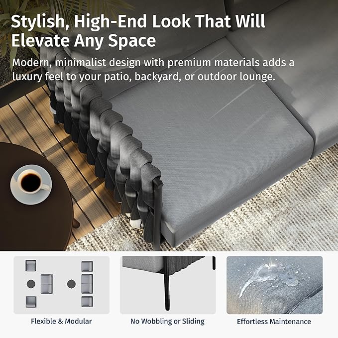 - EXTRA-THICK CUSHIONS FOR ULTIMATE COMFORT: Sink into 6.7-inch high-density foam cushions for deep, lasting support and relaxation. Designed for long hours outdoors, the ergonomic design maximizes comfort, while the removable, washable covers keep your sofa fresh and easy to maintain