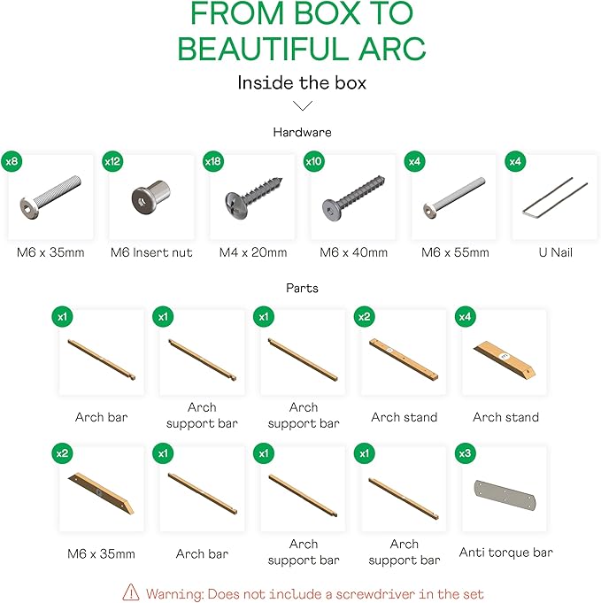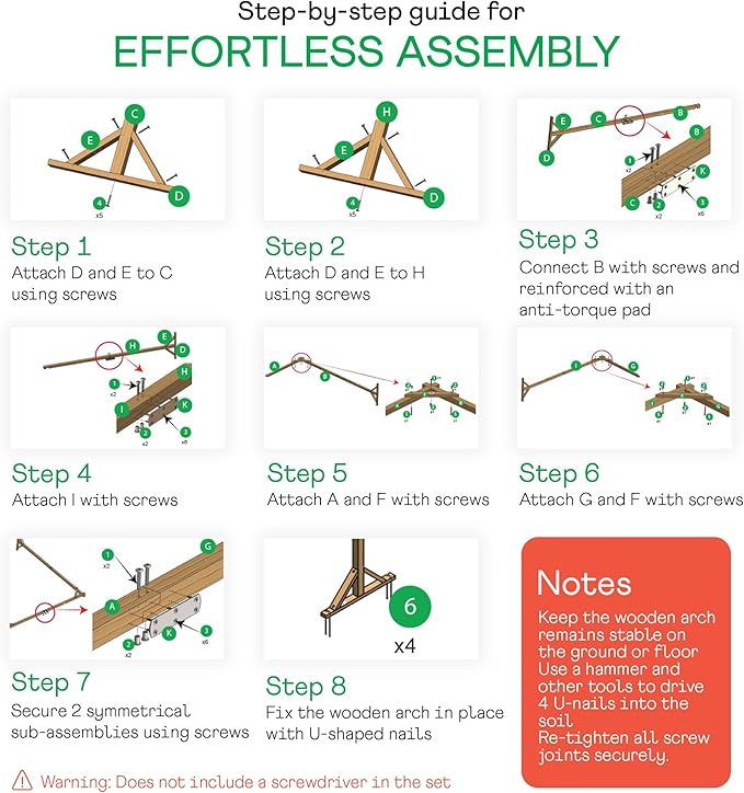 - EASY ASSEMBLY: Includes all necessary tools and clear step-by-step instructions for quick and hassle-free setup; Designed for easy assembly, saving time and effort; Ideal for DIY event setups, whether for a wedding arch frame or wood arch backdrop, ensuring a smooth installation process.