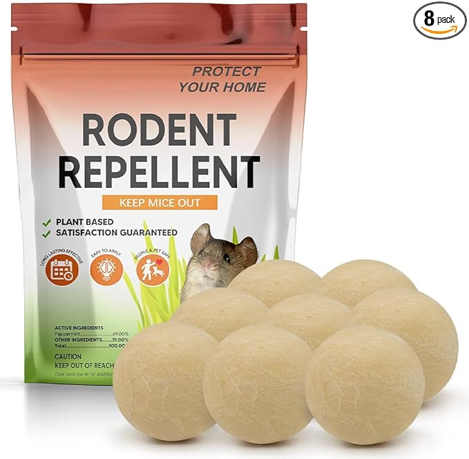 Rodent Repellent, Mouse Repellent, Rat and Mice Repellant Indoor/Outdoor, Peppermint Balls for Rodents, Mouse Deterrent That Works Indoor for Home 8-Pack