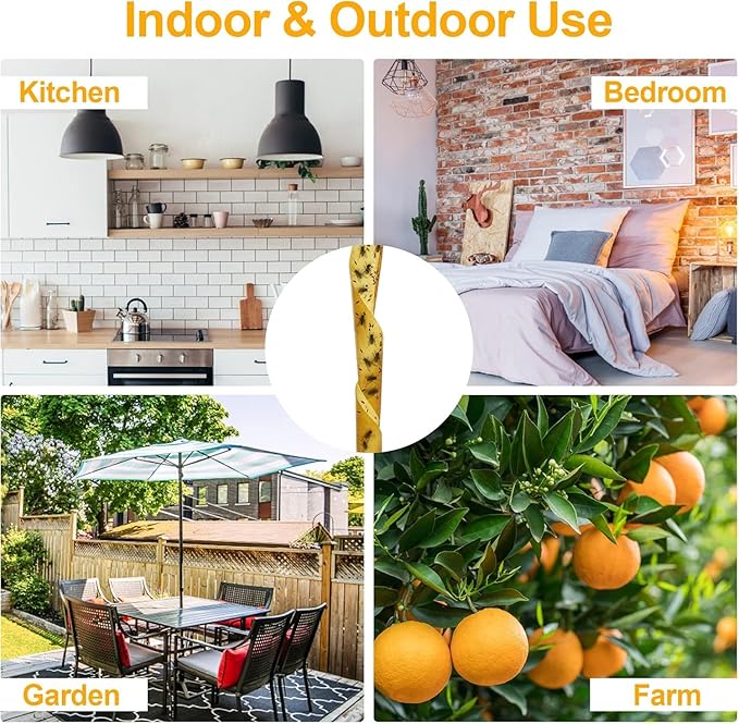 - Versatile use: the bug and flying insect ribbons, designed as fruit fly traps for indoor, are both waterproof and UV resistant. Fly traps can be indoor and outdoor hanging, making them perfect for kitchens, garages, balconies, gardens, orchards, horse barns, farms, ranches, and more