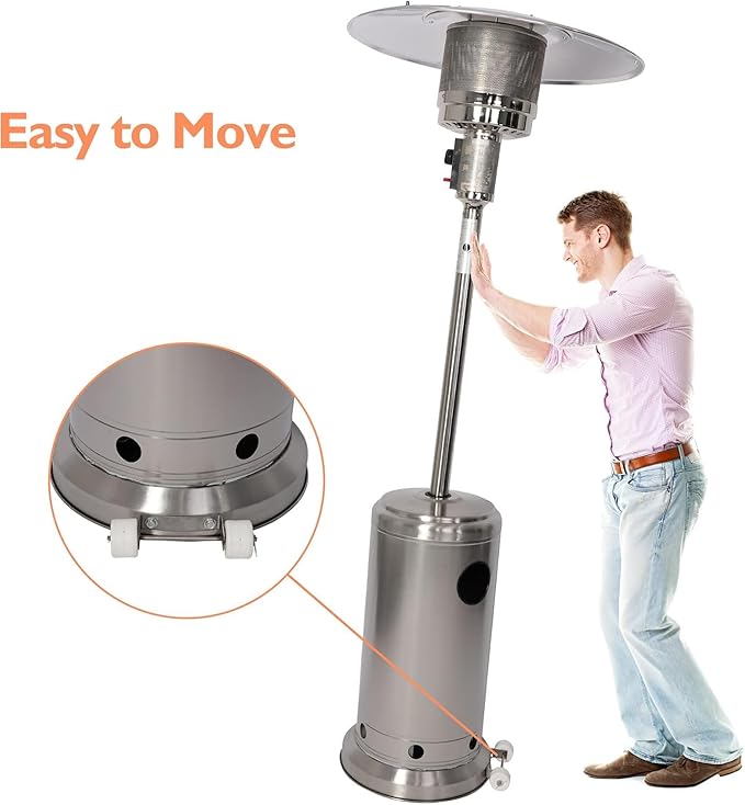 - FLEXIBLE HEATER: The bottom is equipped with durable smooth wheels, which can be easily moved to any place. The outdoor heater can be applied to patio, garden, porch, providing enough warmth for late fall, winter or cold outdoor activities.