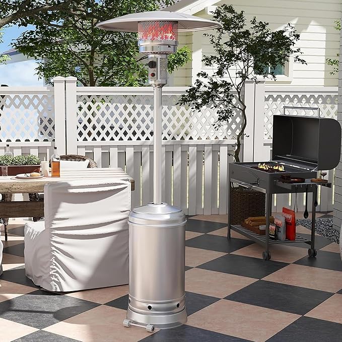 Patio Heater for Outdoor Use with Wheels, LP Propane Heater with Triple Protection System, CE & ETL Certified, Outdoor Heater for Commercial Residential Courtyard Porch Garage(Silver)