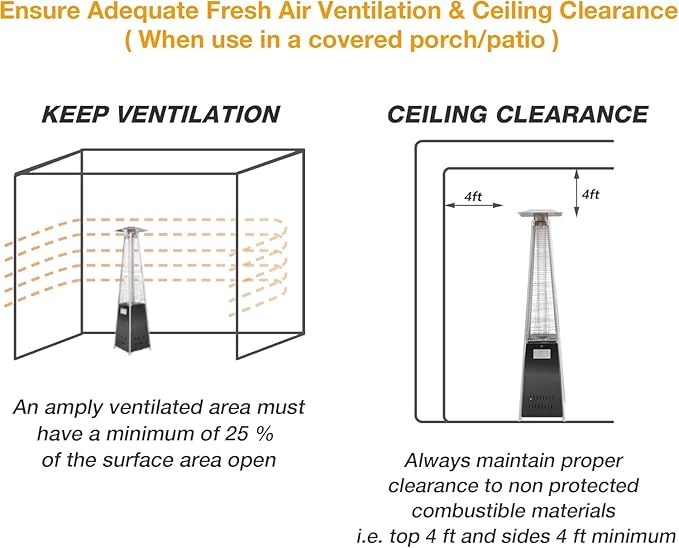 - 🔥Enough Heat - Sitting at a heat output of 42,000 BTU's make this patio heater even hotter than most beach bonfires! The heating can reach up to 200 sq ft, you can relax under the stars with warm and comfortable heat.