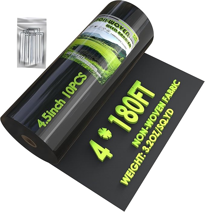5 OZ Non Woven Geotextile Landscape Fabric,Weed Barrier Landscape Fabric for Landscaping, French Drains, Underlayment, Erosion Control, Construction Projects,4x180FT Black