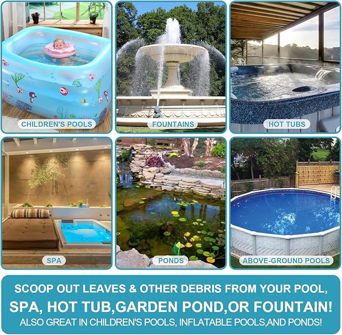 - ENJOY CLEAN POOL OR SPA - An ideal daily use heavy-duty aluminum frame pool cleaning net for fast, easy, and efficient cleanup of silt, sand, pollens, leaves and other kinds of floating debris from above ground pools, spas, ponds, and kids' pools