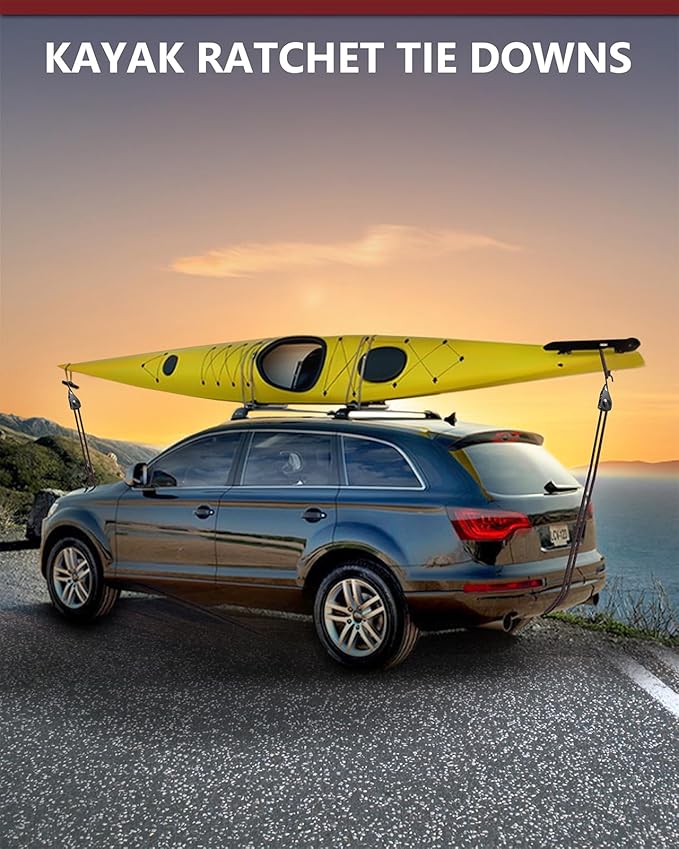 - Built to Last: The kayak straps are durable, tear-resistant, and rust-proof with a weight load capacity of up to 150 lbs per ratchet and 300 lbs per 2-pack