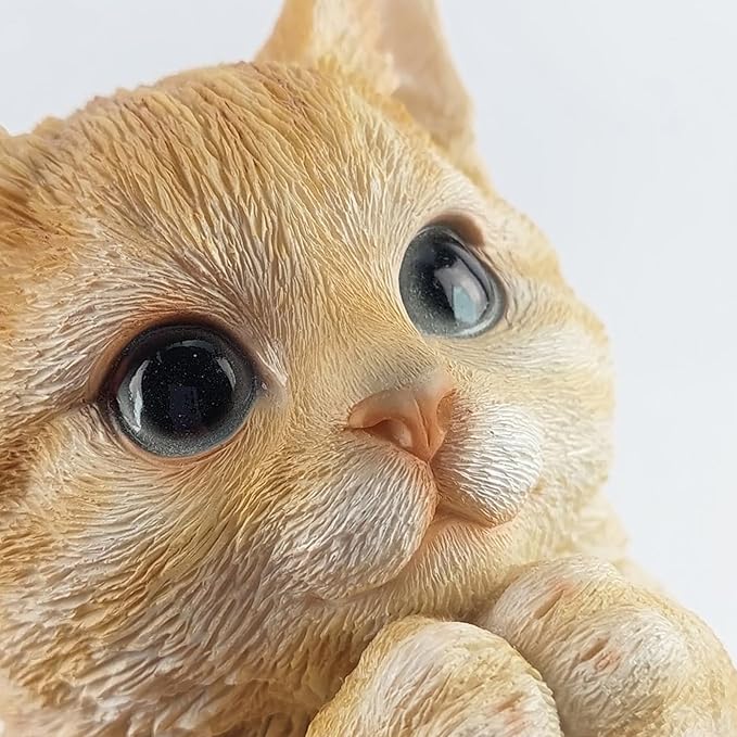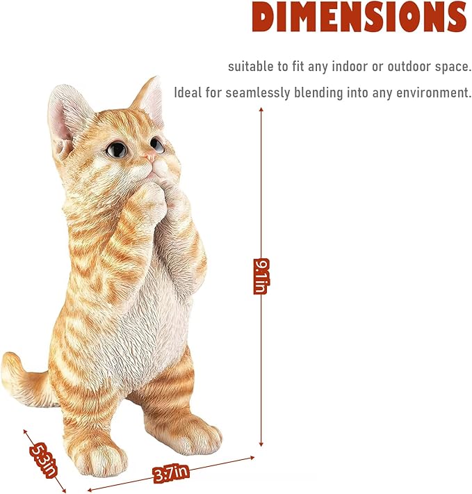 - GARDEN FAIRY STATUE: Hand-painted with intricate and realistic details, these adorable kitties have sweet expressions, shining eyes and pink noses. Perfect to display on your porch, patio or inside your home. Choose the Tuxedo, the Orange Tabby or the grey Tabby for a darling display.