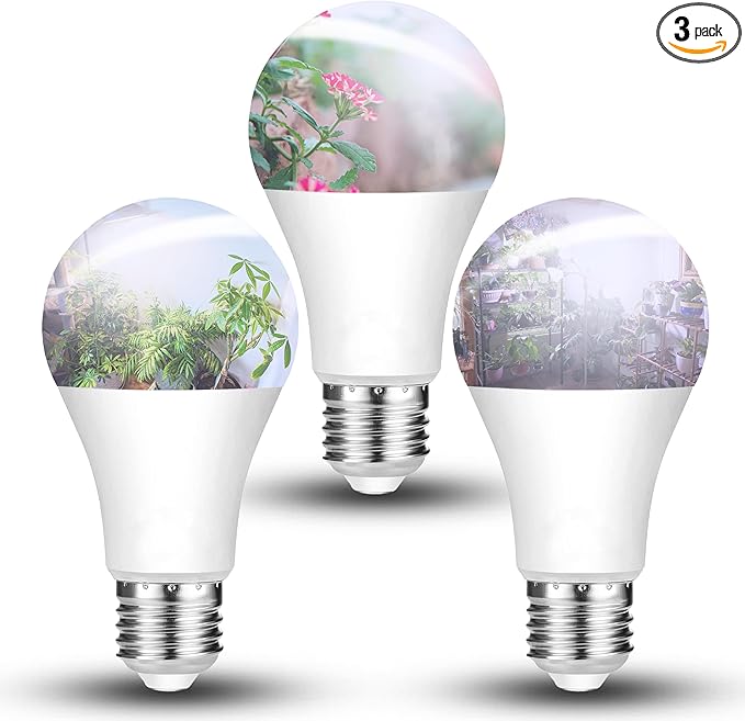 LED Grow Light Bulb for Indoor Plant 9W A19 Plant Light Bulb for Winter with 5000K Red Blue 100W Equivalent Full Spectrum E26 Grow Light Bulb for Seed Starting, Flowers, Hydroponic, Succulents, 3 Pack