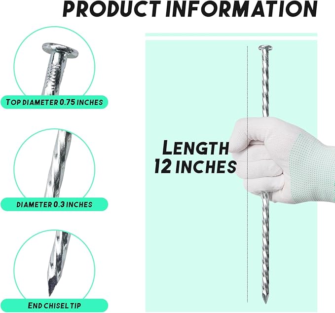 - Quantity and specification: 26 pcs of galvanized metal 12-inch landscape edging anchoring spiral spikes, silvery white