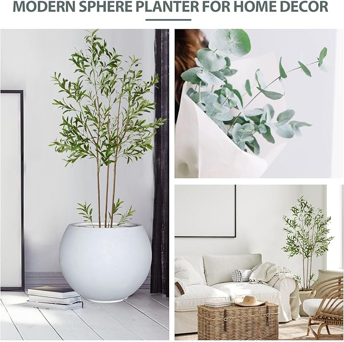 17 H x 21" Dia (15" Pot Opening) Round Fiberstone Planter with Drainage Hole, White, Indoor/Outdoor Large Plant Pot for Home Patio Garden, Ideal for Large Plants