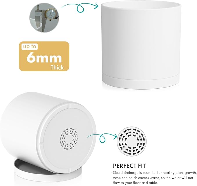 - 【Drainage Holes & Trays】 Excess water flows out of the drainage holes and plant pot saucers collect the overflow to prevent overwatering and flooding, this design allows the plastic planter to protect the plants and soil, keep the surrounding area dry and easy to clean