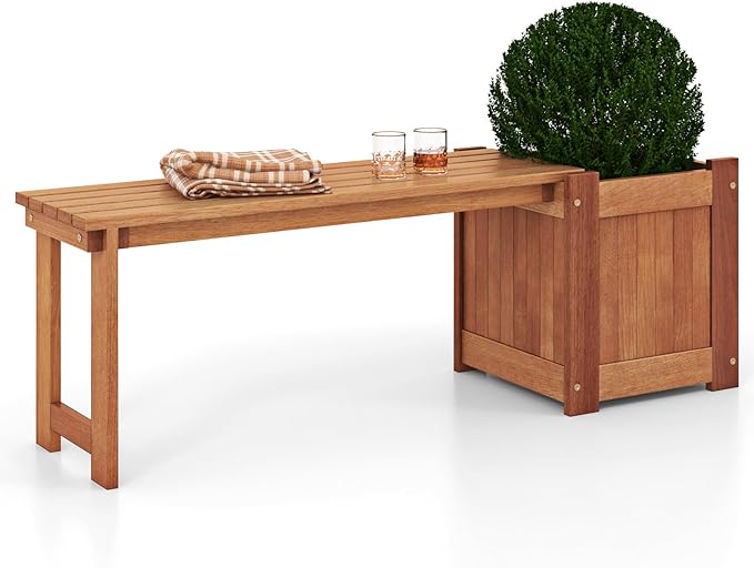 - [Enduring Wood Construction]: Crafted from solid wood, the garden bench with planter box boasts exceptional crack-resistance and sturdiness. More than that, the teak oil finish not only enhances the bench's durability but also promotes easy maintenance.
