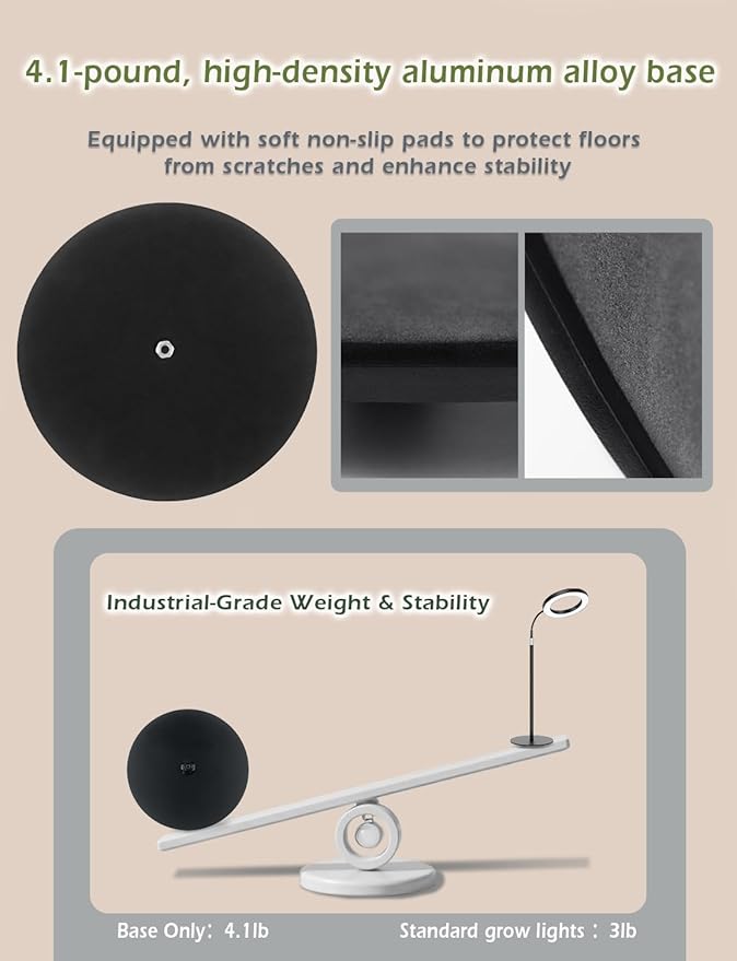 - Durable & Stable Full-Metal Design: Crafted with a premium full-metal structure, this grow light offers enhanced durability and efficient heat dissipation through its sleek metal lamp head. The widened 4.08-pound weighted base is even heavier than other grow lights as a whole, ensuring greater stability, preventing tipping, and providing a solid support for long-term indoor plant care.