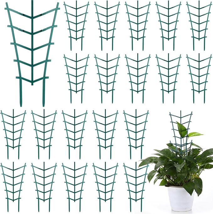 - Package Includes: you will receive 50 pcs small trellis for potted plants in dark green color, and the trellis can be well hidden in plants without obscuring their beauty; The length of garden trellis is about 10.2 inch/ 26 cm, the upside width is about 6.1 inch/ 15.5 cm, and the underside width is about 2.2 inch/ 5.5 cm