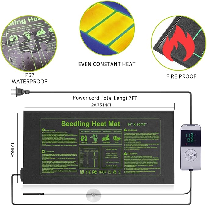 - 【Accurate Temperature】This seedling heat mat comes with thermostat which allow customers to set temperature from 50~113F, can provide ideal temperature for seed germination and plant propagation, increase your seed germination and plant propagation success rate.