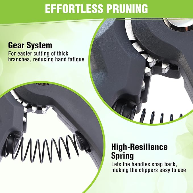 - Effort-Saving Design: The built-in gear system enhances leverage, reducing hand strain while improving cutting efficiency. Ideal for frequent use, it helps gardeners cut with less effort, making it easier to maintain your garden