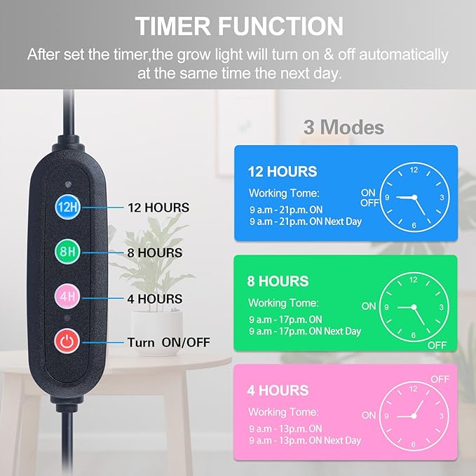 - Timer for Auto On/Off Plant Lights for Indoor Growing---4/8/12H Timer Grow Lights for Indoor Plants. Auto On/Off Every Day Just as You Need.
