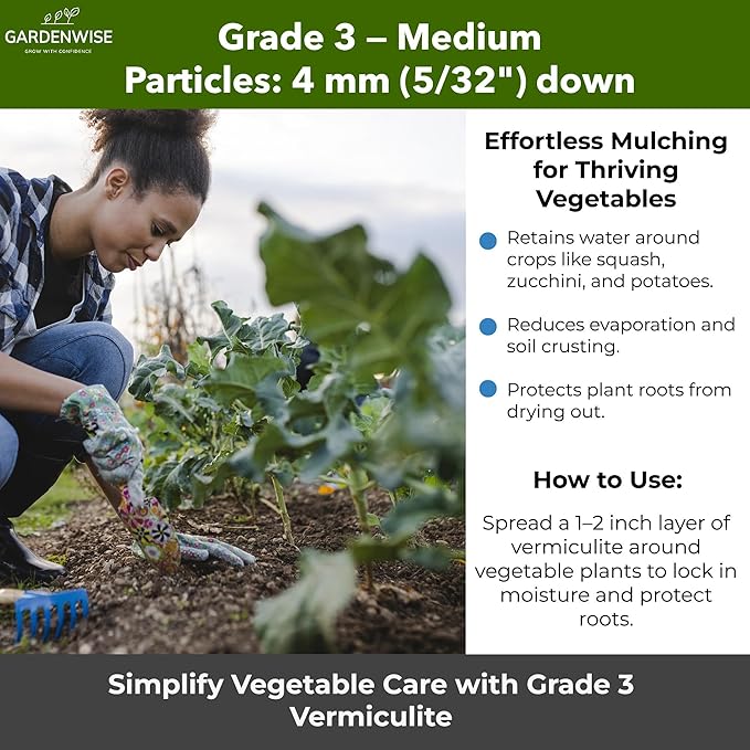 - Organic & Safe for All Plants: Made from natural, organic vermiculite, it's safe for vegetables, flowers, lawns, and all your gardening projects without harmful chemicals.