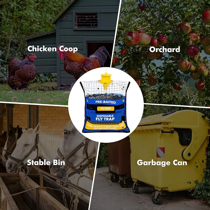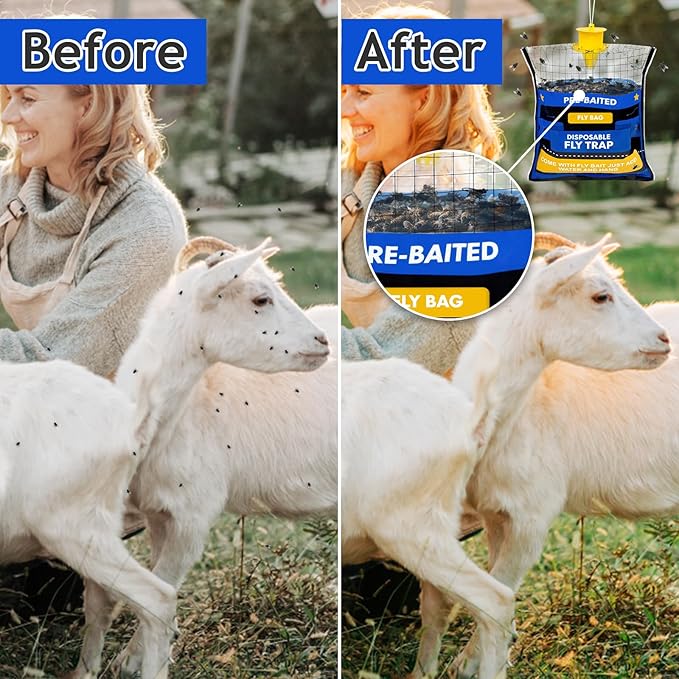 - Safe and Disposable: When the inside of the fly bag is full of dead flies, you can tear open the bag and dump the dead flies to feed your livestock, or just roll it up and throw it in the trash. No need to worry about safety or clutter.
