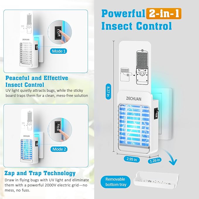 - Convenient Fly Killer Electric with Easy Cleaning: This electric fly zapper is designed for convenience with a removable tray for hassle-free cleaning. Simply unplug the device, slide out the tray, and dispose of trapped insects. Compact and sleek, it fits effortlessly into any room. With 5 sticky cards included, this mosquito and fly zapper provides continuous, low-maintenance pest control for your home or office