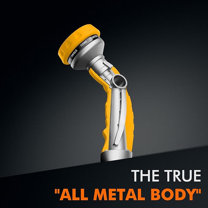 - 【Heavy Duty Metal Hose Nozzle】Constructed with premium zinc-alloy material, this hose nozzle sprayer is solid & strong to resist daily drops and shocks. The bronze powder painting, TPU coating and rubberized bezel dial can enhance durability & flexibility and withstand hard impacts & heavy force. A long-lasting garden hose nozzle you can count on many years.