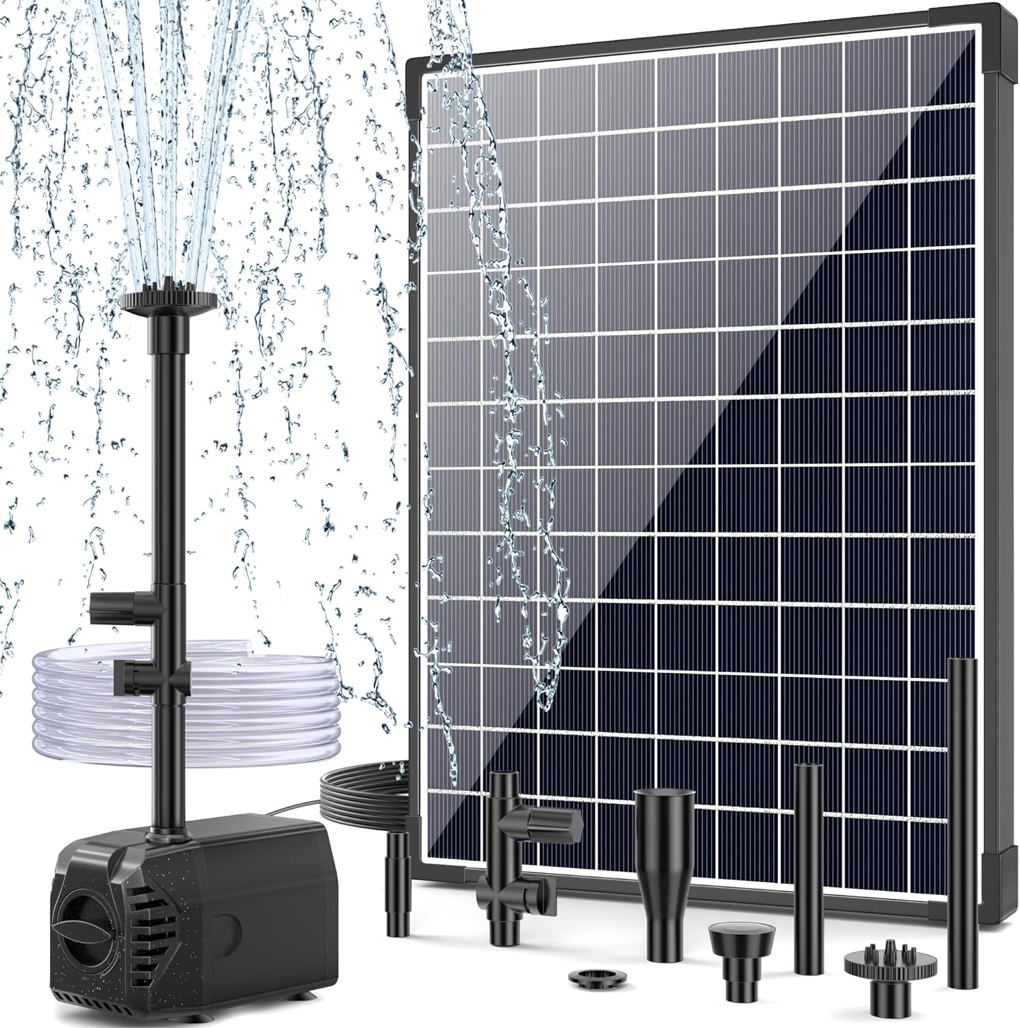 • ⛲【Easy Installation & Wide Application】The solar fountain pump equipped with a 90° angle adjustable mounting bracket, you can install it on the wall or on the ground. The 17ft long cord allow you to find the best place to place solar panel. Perfect for pond, wildlife decoration, fish tank, Waterfall, Hydroponics and water circulation for oxygen etc.