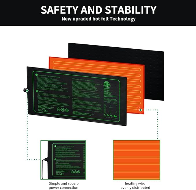 - Consistent & Even Heat - Ruyyi plant heating mat provides stable, uniform temperatures that ensures the root area of seedlings remains between 70℉and 85℉ to ensure growth and increased germination,also ideal for seed starting and cuttings