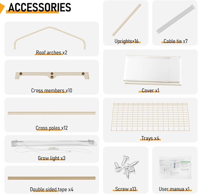 - Durable Small Greenhouse: The sturdy frame and shelves are constructed from rigid steel tubing, ensuring long-lasting durability,it caters to more seed trays and growing lights. Plastic parts are strategically placed between the tubes to enhance stability. The installation process requires no tools, and the shelf can be easily adjusted to meet individual needs