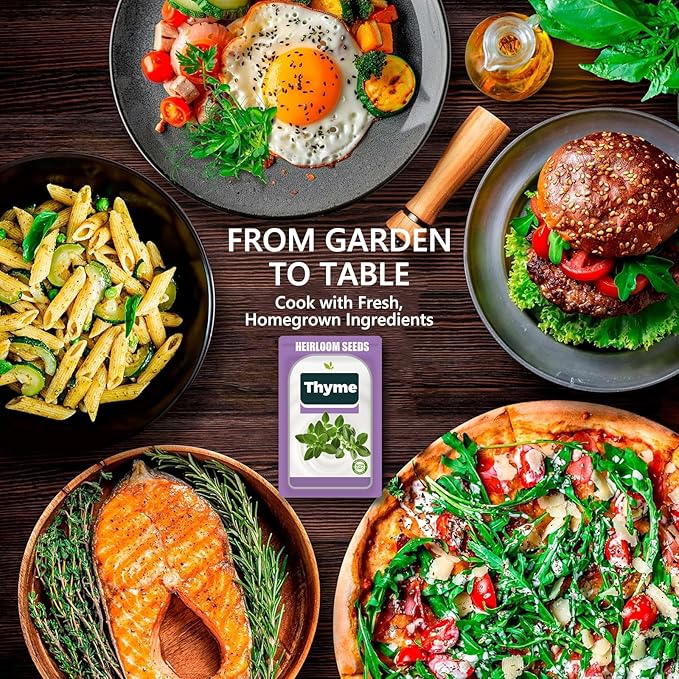 - Heirloom Non-GMO Seeds: The seeds in garden starter kit contains 1800+ easy grow herb gardening seeds of thyme. Growing your own herbs for eating has never been this easy! Enjoy fresh, home-grown herbs for cooking and garnishing (plant food not included)