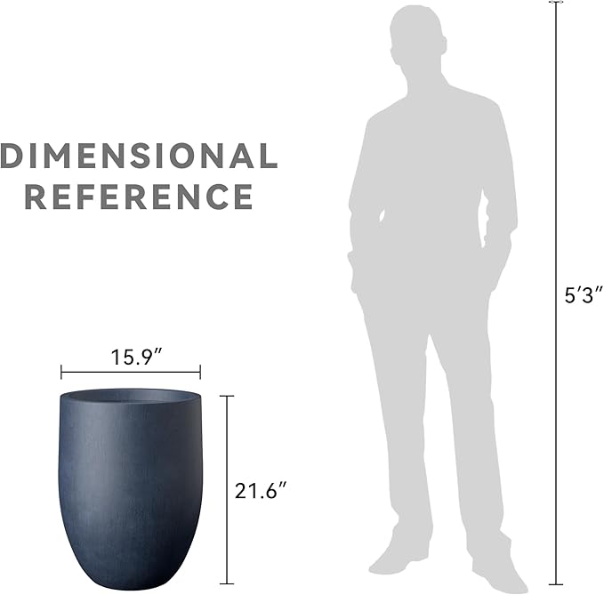 Kante Tall Concrete Planter, 21.7-Inch Height Antique Blue Large Indoor Outdoor Plant Pot with Drainage Hole for Patio Garden Home, Modern Decor for Flowers and Tree