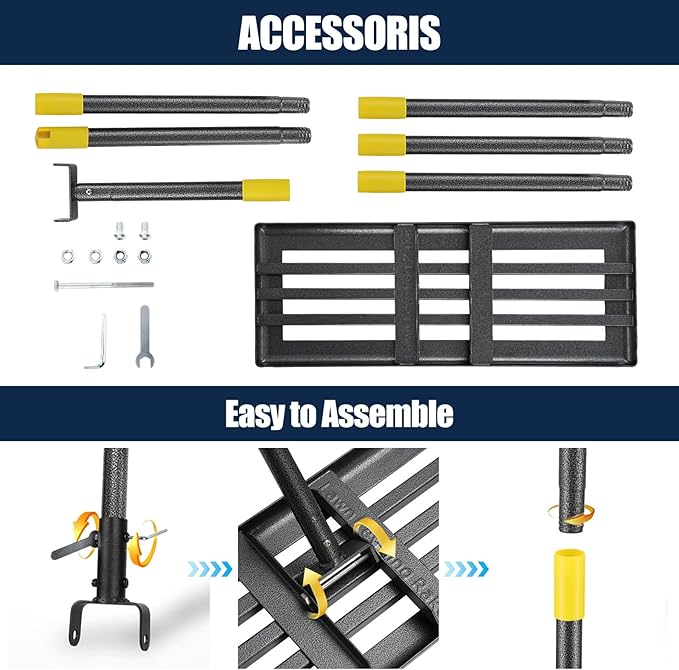 - 1️⃣ Industrial Grade Construction: The poles of our lawn leveling rake is forged from 1.1 mm diameter stainless steel with a coated finish that can withstand over 300 pounds of pressure. The corrosion-resistant treatment ensures a 5x longer life than plastic rakes.
