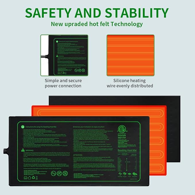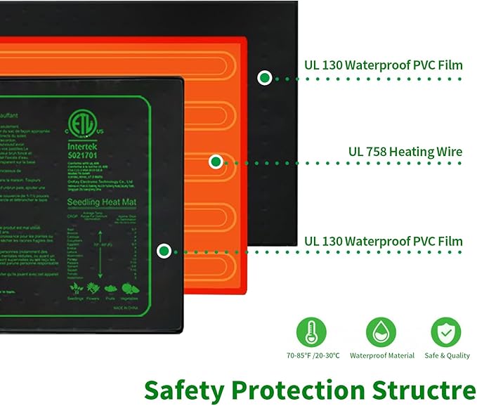 - Certified Safety & Reliability:Ruyyi Seedling Heat Mat with ETL listed,Conforms with UL 499, Conforme à la norme UL 499,CSA C22.2 #64