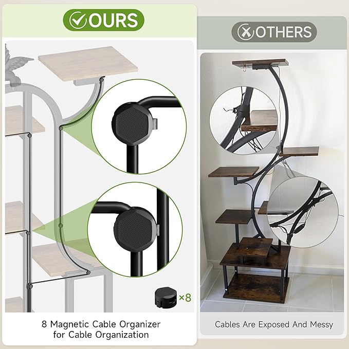 - 【Magnetic Cable Organizers】Our plant stand with grow lights comes with 8 pieces magnetic cable organizers to help manage cables. Unlike other plant stand indoor with grow lights, which often have tangled wires after assembly and look messy. These magnetic cable organizers make cable management easier and more convenient, keeping the wires neatly organized.