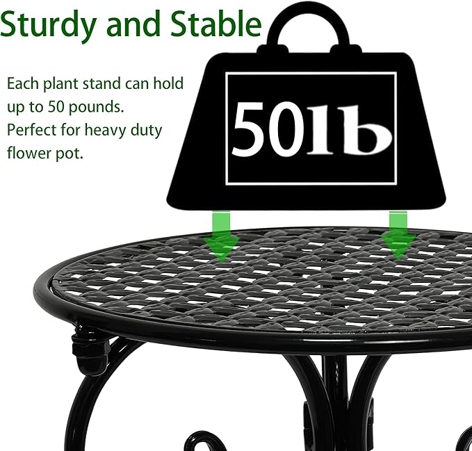 - ❀【Sturdy】Plant table made of high quality wrought iron and cast iron wire welded, make it strong, durable and each flowerpot rack can hold up to 50 pounds. It's perfect for heavy duty planters.