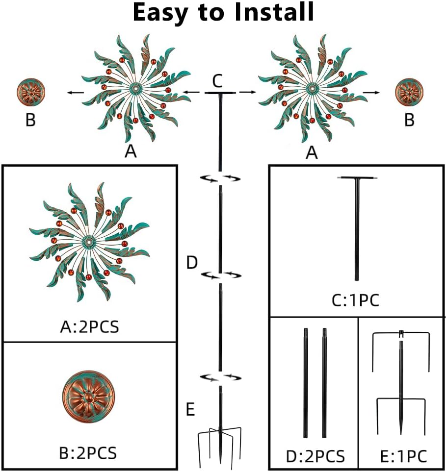 - Easy Installation: The garden spinners outdoor are equipped with complete accessories, and the components can be connected without tools. With simple rotation, the yard spinners outdoor can be assembled in just a few minutes