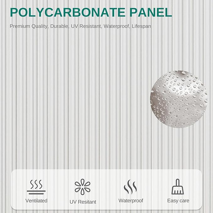 - ALL SEASON GREENHOUSE: Top tilt angle design of the polycarbonate aluminum greenhouse helps to achieve effective wind resistance and drainage capacity; This beautiful and convenient product is ideal for gardens, decks, and backyards for year-round plant cultivation and protection