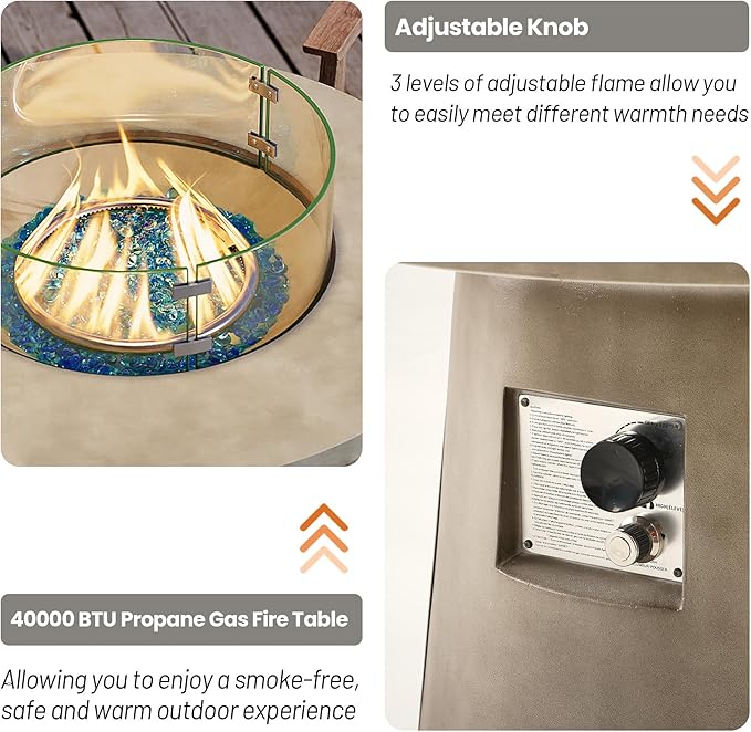 - 【Wonderful Center】: Frosted concrete outdoor fire table, simple and elegant, whether it is a courtyard, a terrace, or a swimming pool, it can be perfectly embellished. This outdoor fireplace table with 3 levels of adjustable knob can control the flame freely to meet your various needs. Imagine this wonderful feeling, it is great!