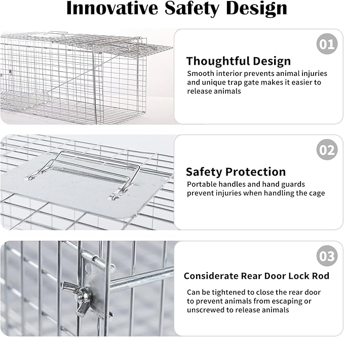 - DEVELOPED BY PROFESSIONAL TRAPPERS: Live traps for cats are designed and manufactured by professional trappers who have worked in the field for decades. Live traps for raccoons come with a variety of features and sturdy build quality that are important for trapping animals humanely, effectively, and with minimal injury or stress