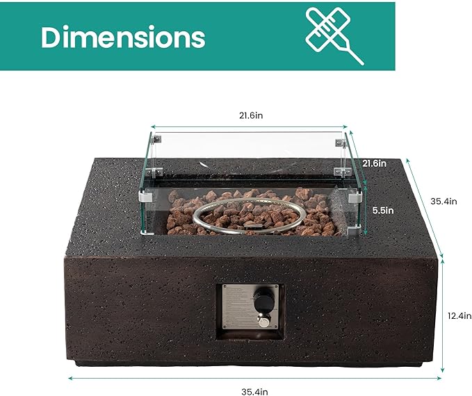 - Unique Fireplace: It's like having a fireplace wherever you want it! The low profile of this elegant fire table just beckons you to gather round it and tell stories. Clean burning propane flame provides soothing warmth with electronic ignition, safety valve for easy start, gentle lighting and a centerpiece for many outdoor evenings worth remembering.