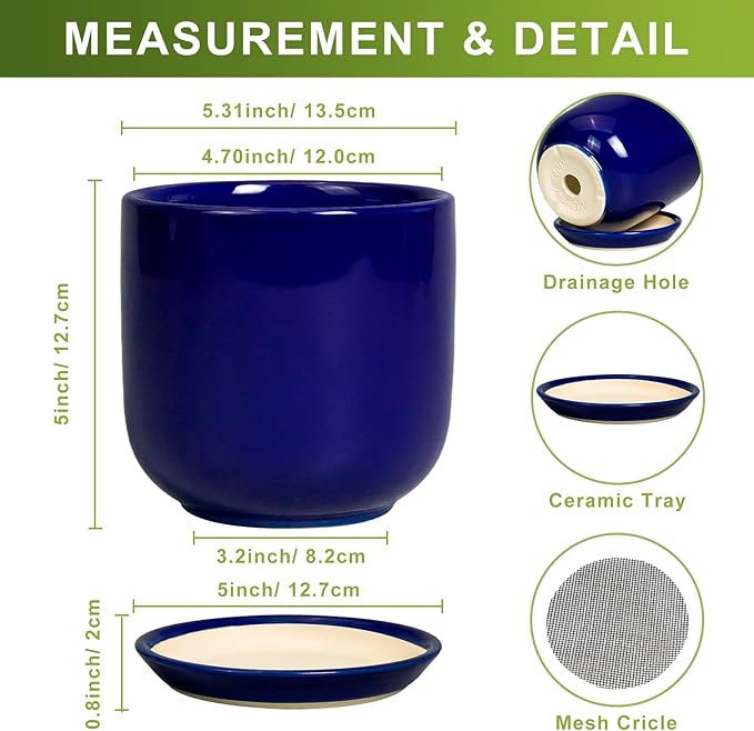 - Size of Blue Planter: Each ceramic planter is 5.31β D x 5.39β H. This indoor plant pot is ideal for succulent, bonsai, herb, cactus, orchid, aloe vera, snake plant, money tree