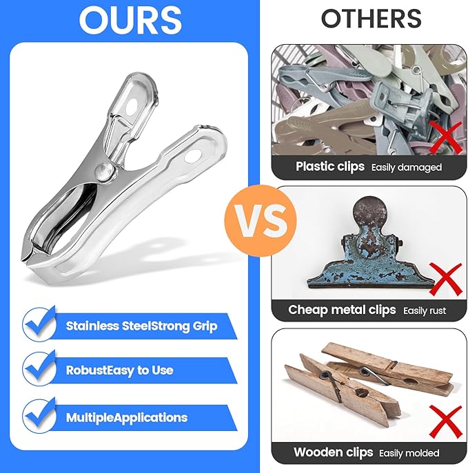 - 【Premium Stainless Steel Material】Garden clips are crafted from top - notch stainless steel. In contrast to the easily - damaged plastic and corrosion - prone wood counterparts, they are robust, long - lasting, and highly resistant to breakage and deformation. With a 100% stainless - steel build, these clips are weather - resilient, rust - free, and ideal for extended outdoor applications.