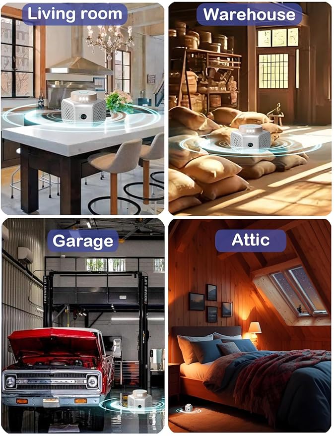 - Ultrasonic pest repeller:Our ultrasonic rodent repeller uses 3 ultrasonic speakers and 1 pulse speaker to drive out pests like rodent,squirrel,bat,mouse,mic and more by disrupting their hearing and nervous system,offering a humane,chemical-free solution for pest control