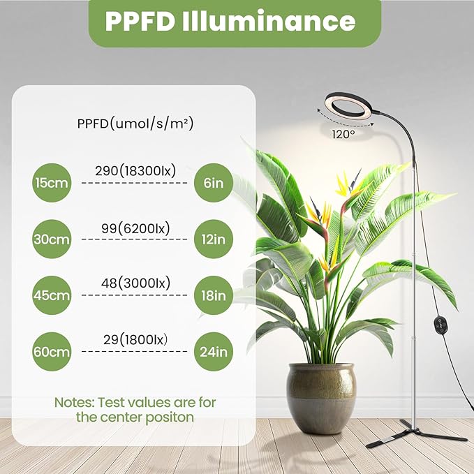 - FOR INDOOR GARDEN PLANTS:Built with advanced LED technology, this plant lamp delivers 290μmol/s/m²@6in PPFD while consuming only 18W of power, making it twice as energy-efficient as comparable models. Perfect for nurseries, seed starting, and indoor plant growth, supporting succulents, aloe vera, devil’s ivy, calibrachoa, and African violets.