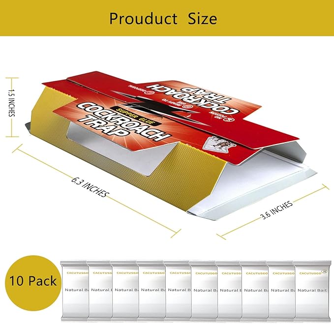 - Easy-to-Use Design – Simply place the trap in roach-infested areas such as kitchens, cabinets, and corners. The foldable design can be used flat or as a tent for discreet placement.