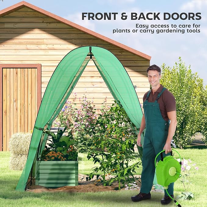 - Easy Access and Ventilation: The walk-in greenhouse is designed with two zippered front and rear doors for easy entry to tend your plants. Additionally, two side mesh windows provide excellent ventilation and promote better air circulation