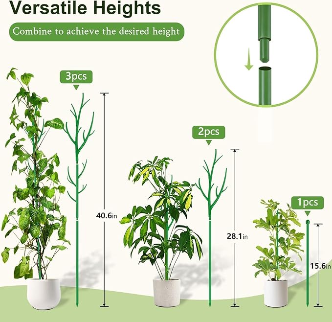 - 【Stackable Monstera Support】- Allow for height adjustment to meet the needs of various plants and assembled into various styles,perfect for indoor and outdoor use.They provide sturdy support for climbing and multi-leaved plants,ensuring they stay upright and thrive.Excellent alternatives for plant cages or moss poles.