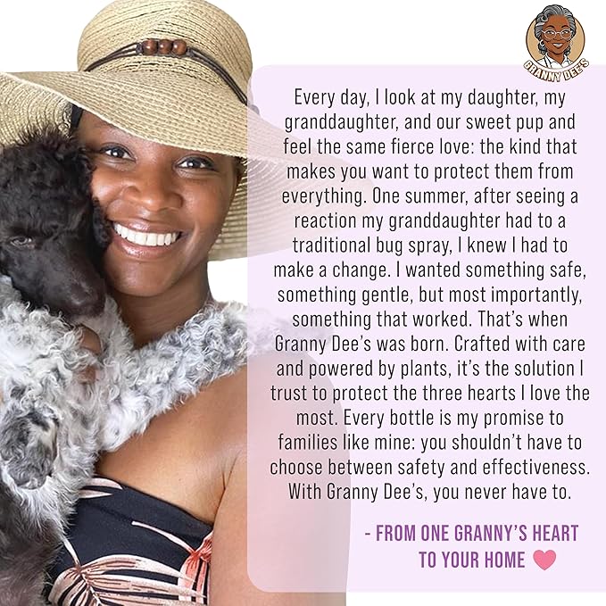- BORN FROM A FAMILY PROMISE: Granny Dee's Earwig & Silverfish Killer - Indoor/Outdoor is inspired by our founder’s love for her grandkids and pup, after seeing a reaction to traditional bug spray. We offer safe & effective plant-powered protection in every spray.