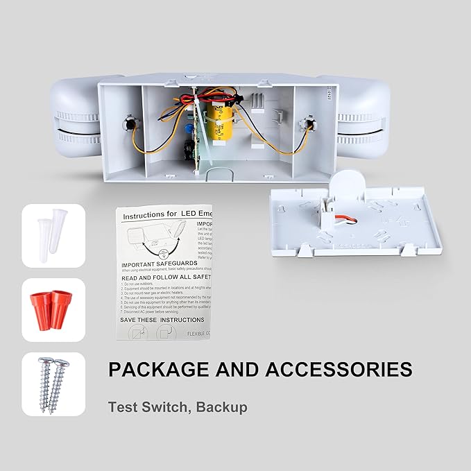 - 【LONG-LASTING BATTERY BACKUP】Features a maintenance-free, rechargeable nickel-cadmium Nicad battery it automatically turns on during power outages,that powers the lights for at least 90 minutes during outages. Built-in test switch and status indicator ensure easy monitoring and consistent performance.
