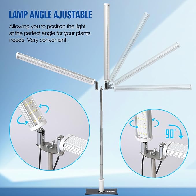 - Adjustable Angle: the grow lamp’s dual head is 90 degree adjustable and 360 degree rotatable, it can be even used vertically, allowing it to create the ideal lighting setup for your indoor garden.